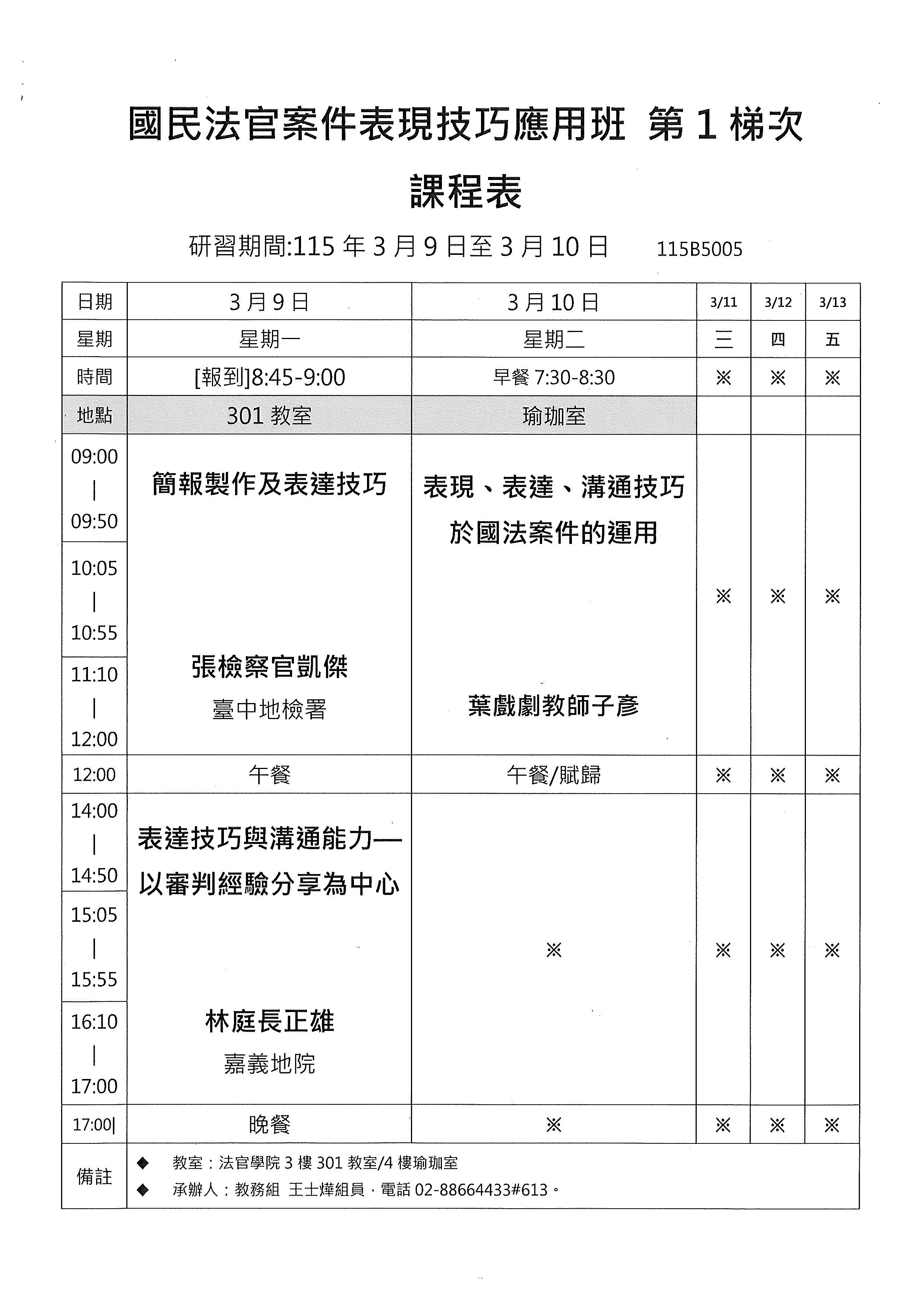 <會外課程>法官學院115年3月9-10日「國民法官案件表現技巧應用班-第1梯次」