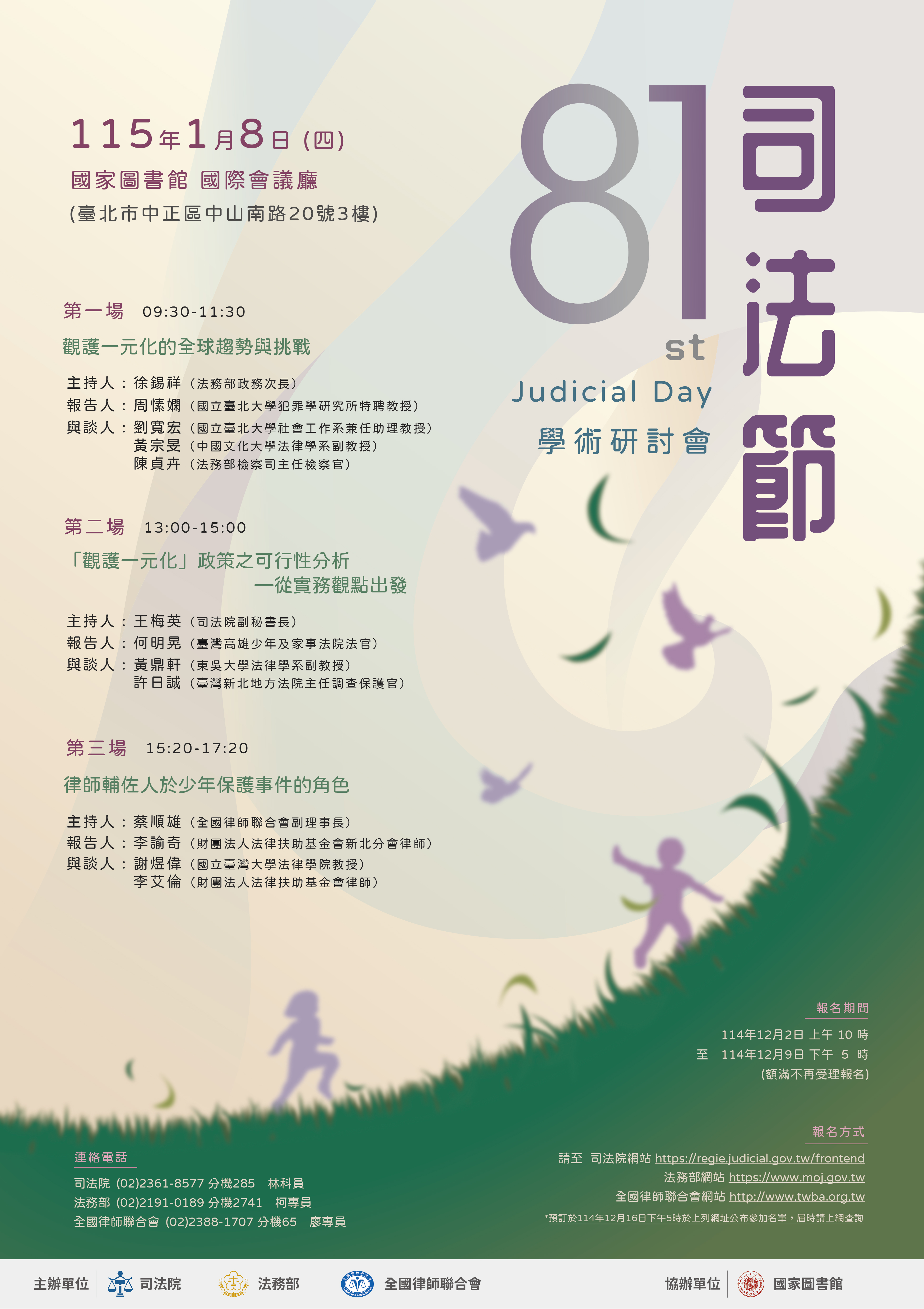115年1月8日第81屆司法節學術研討會,敬請會員踴躍報名