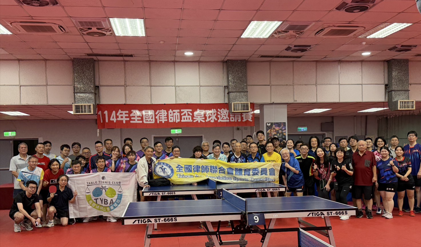 由本會主辦、台北律師公會承辦「114年度全國律師盃桌球邀請賽」🏓在114年11月23日於臺北科技大學活動中心開打,全場共13組團隊,各律師公會、司法人員與友會團體共同參賽,現場全國律師聯合會蔡順雄副理事長、各公會代表及各隊球員參加開幕活動🎉,🏆本次比賽早上舉辦個人組,下午為團體賽,特別的是個人長青組有許多高齡道長參賽,展現寶刀未老的精湛球技,現場球敘非常歡樂!感謝台北律師公會、北律桌球社全體社員及體育委員會委員辛苦規劃😊,比賽圓滿順利!