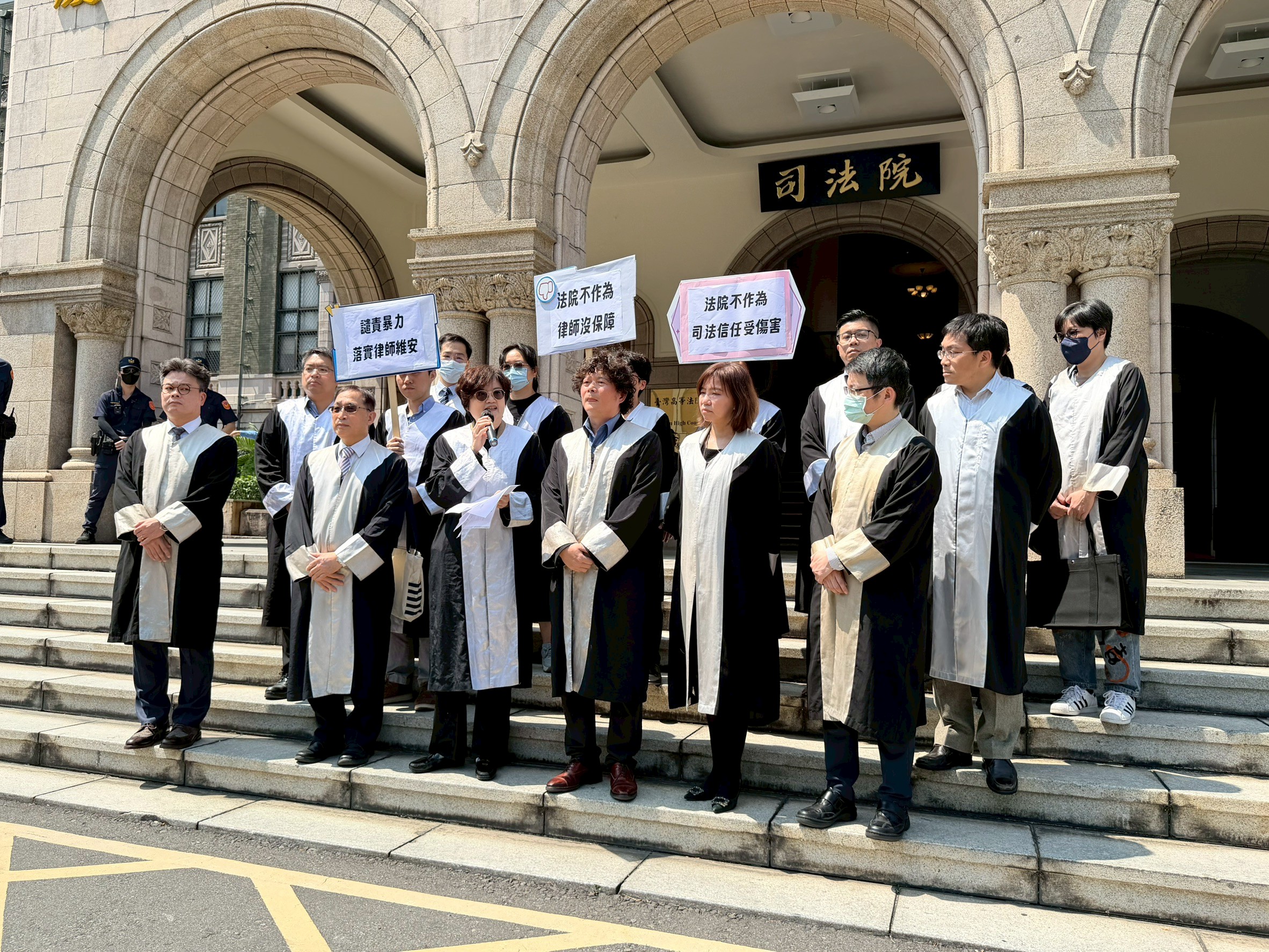(二)本會再次發表聲明,要求臺中地方法院更正聲明內容,確實還原現場情形,並正視己身責任。復於上午11時40分,號召會員於司法院大門召開記者會。
