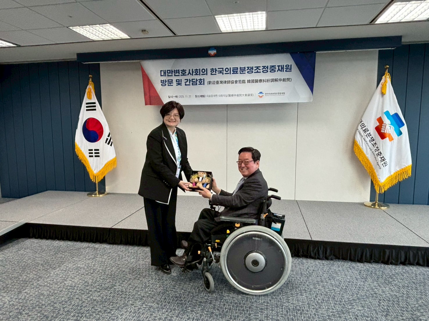 雙方隨後展開熱烈的 Q&A 與意見交流。會後,雙方互贈紀念品並合影留念,為本次專業交流畫下圓滿句點。本會代表團亦對 K-Medi 的周到安排與精采分享表達誠摯感謝,並期待未來持續深化台韓兩國在醫療爭議處理制度之交流與合作。